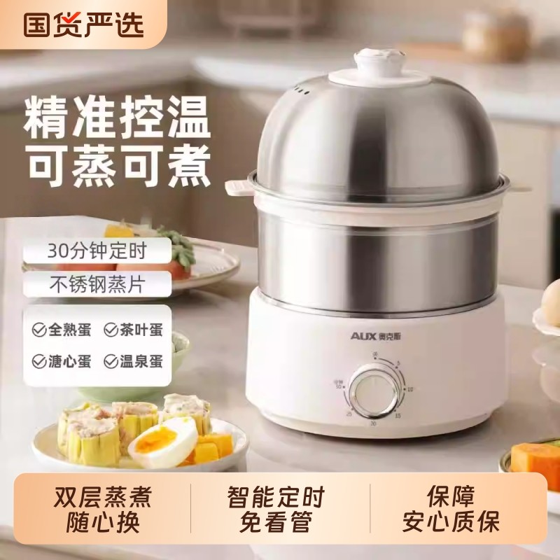 奥克斯煮蛋器蒸蛋器家用新款定时温泉蛋机自动断电家电蒸锅早餐机