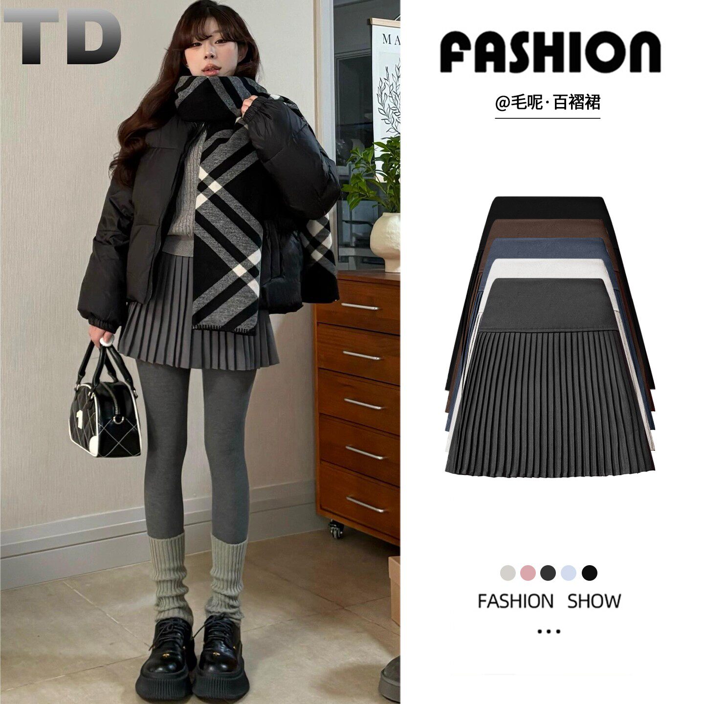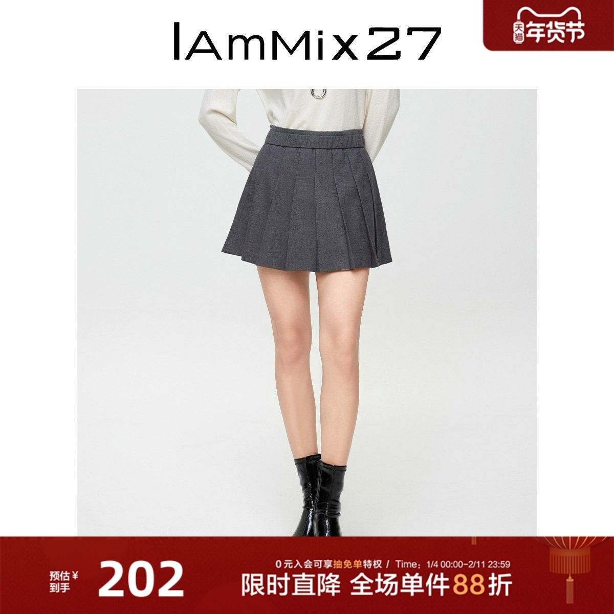 IAmMIX27冬季高腰百褶短裙女减龄百搭加厚显瘦小个子女团A字裙女