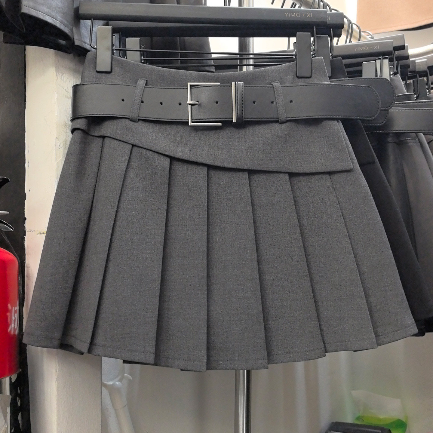YIMOXI高腰百褶短裙女2025秋季A字裙防走光百搭显瘦设计感半身裙