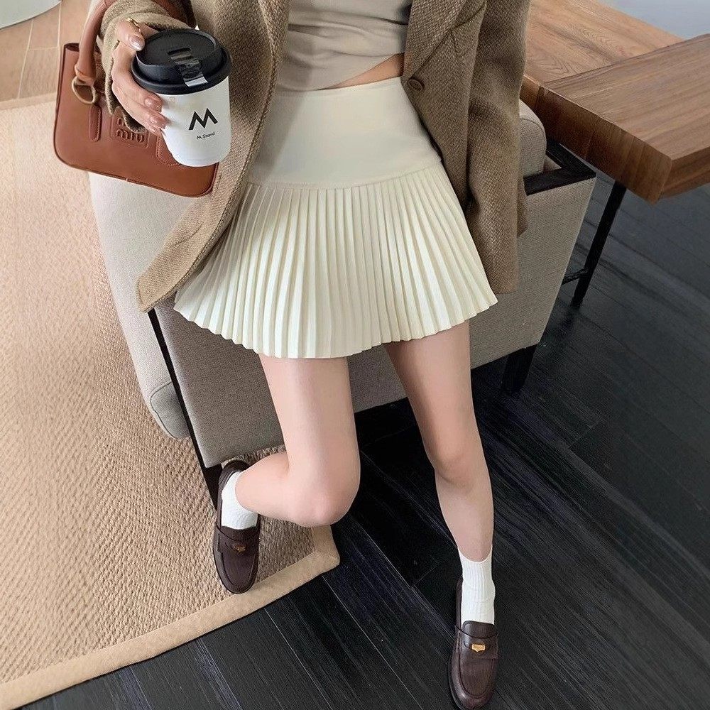 白色高腰百褶短裙女学院风显瘦A字半身裙芭蕾风毛呢裙2025年冬季