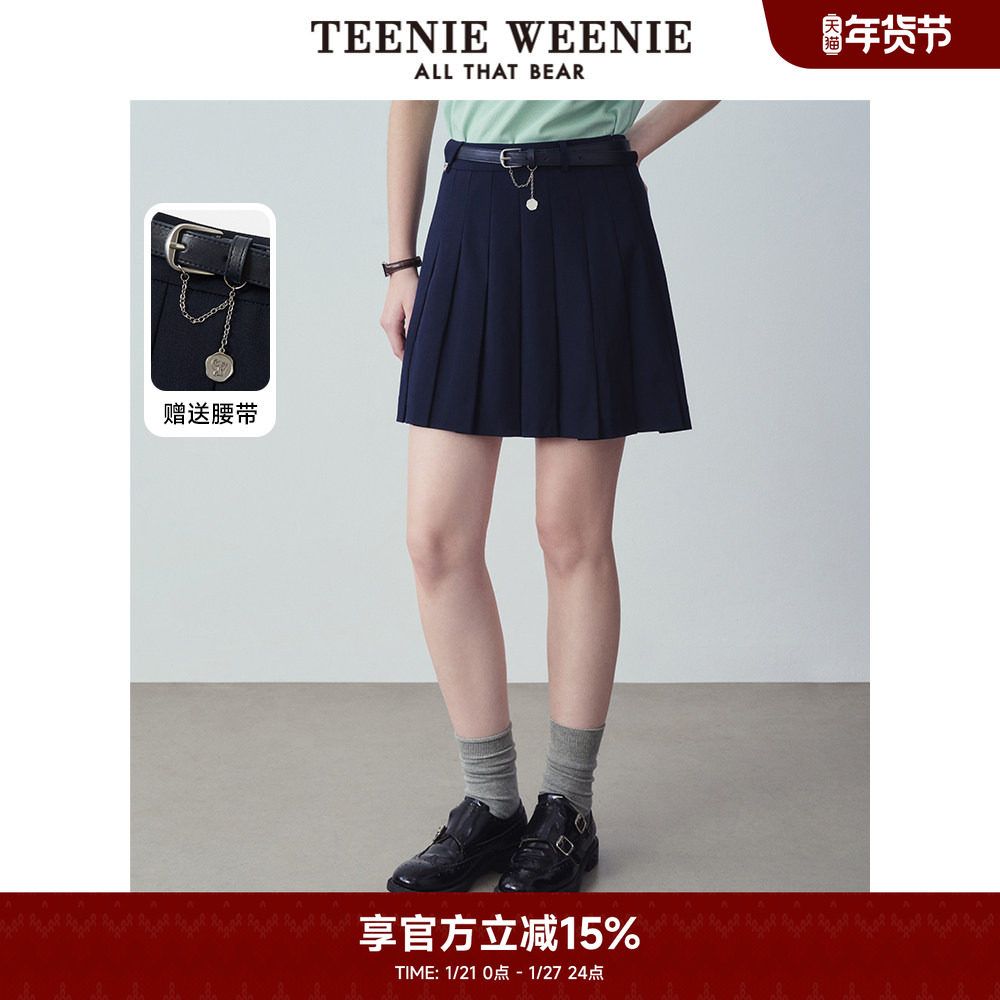 TeenieWeenie小熊奥莱女装秋季高腰百褶短裙学院风半身裙女休闲