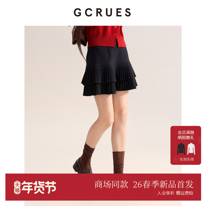 GCRUES商场同款气质高腰百褶短裙女春季百搭A字半身裙G12C07A0272