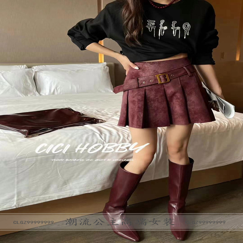 现货正品潮流公主CI小皮裙女2024秋冬纯欲辣妹A字裙高腰百褶短裙