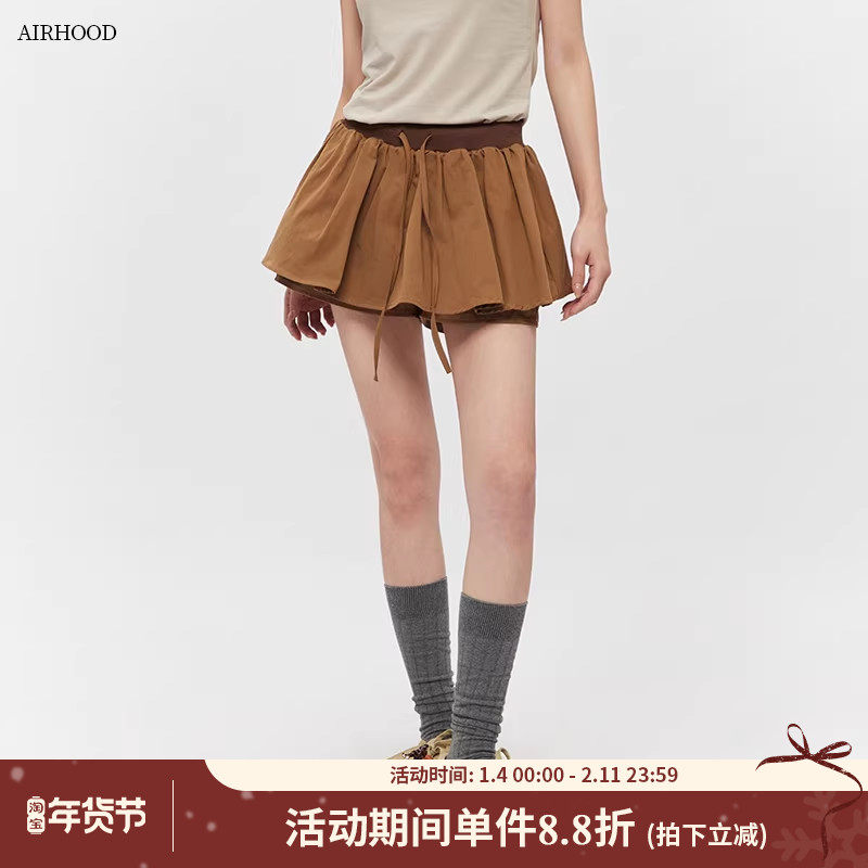 AIRHOOD 高腰百褶短裙防走光a字蓬蓬花苞裙半身裙2025夏季裤裙女
