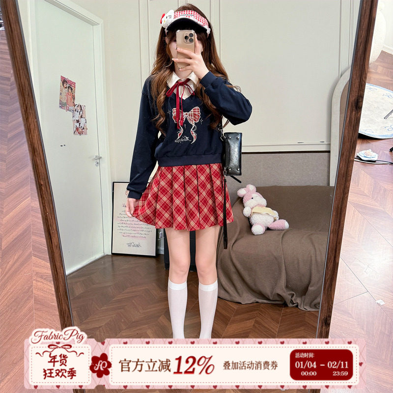 织物猪 少女学境 学院风jk制服格纹半身裙女小个子高腰百褶短裙子