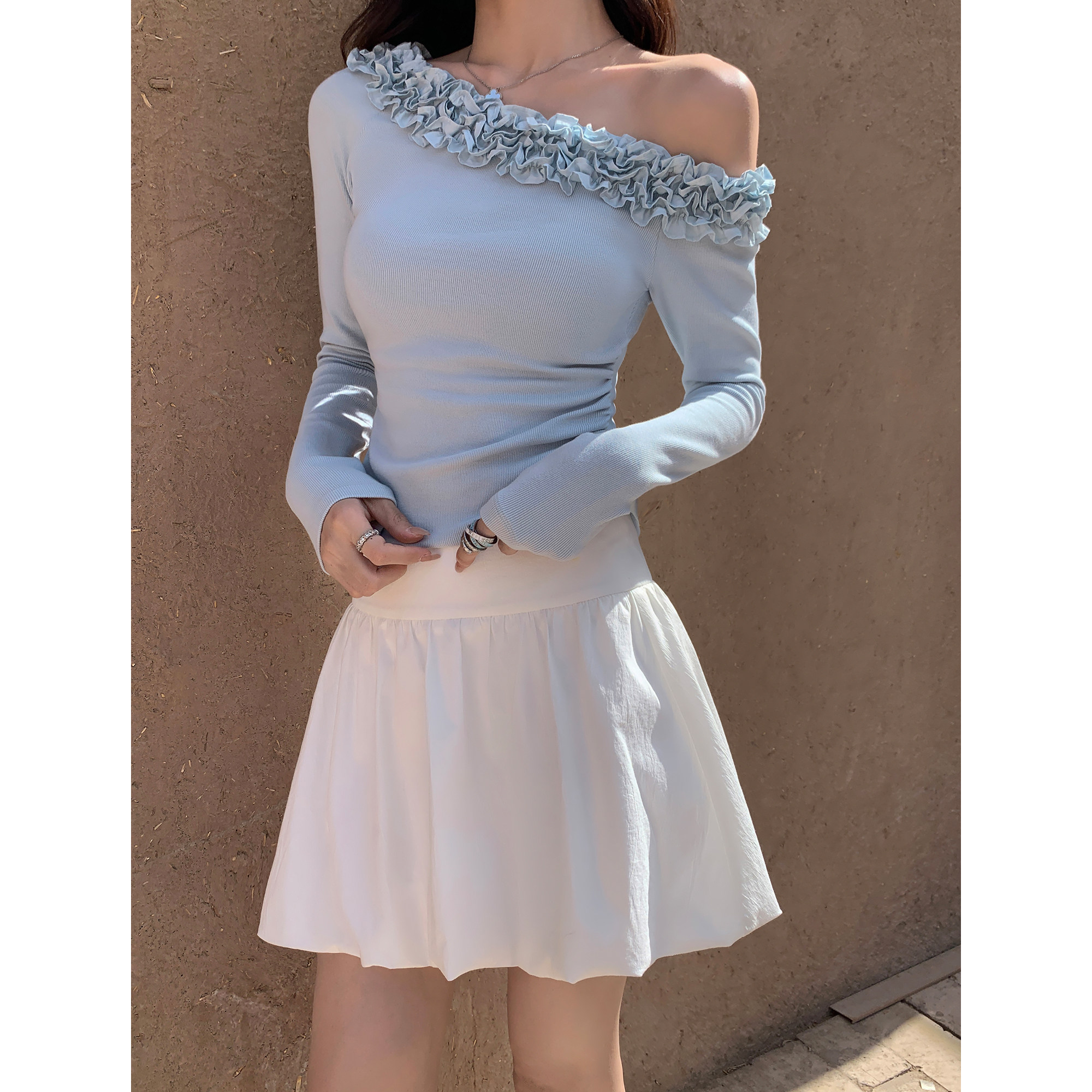 MULVAN 温柔女友 甜美俏皮白色花苞半身裙女春秋韩系高腰百褶短裙