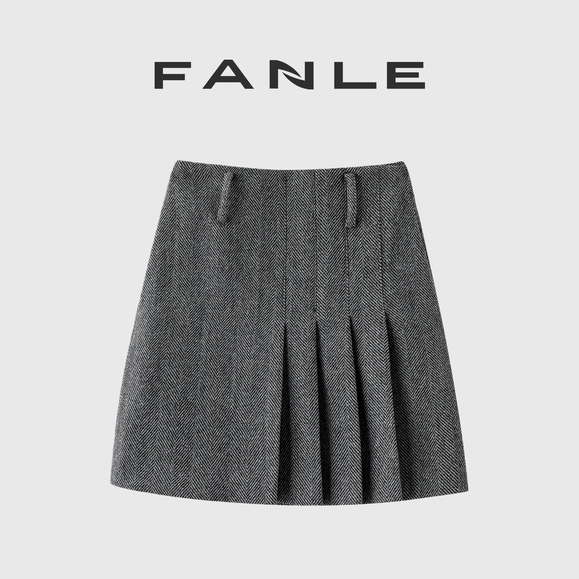 【清仓买三免一区】高品质加厚羊毛高腰百褶短裙人字纹遮胯半身裙