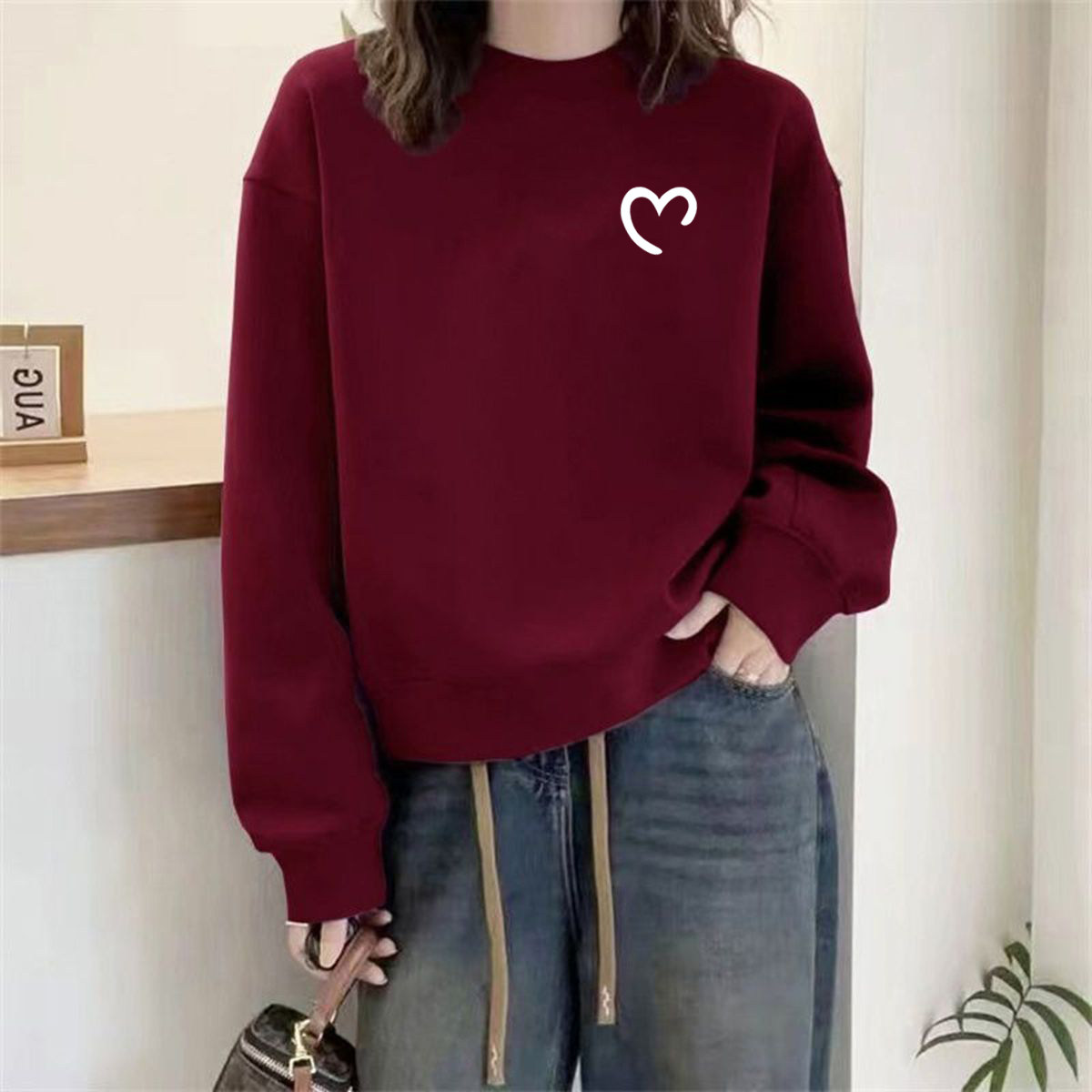 国潮风大红圆领纯棉卫衣男女同款休闲宽松青年学生加绒加厚上衣服