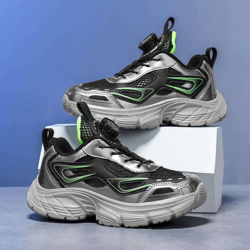 ABC SHIELD男童运动鞋透气网面防滑儿童跑步鞋旋纽扣软底登山鞋子