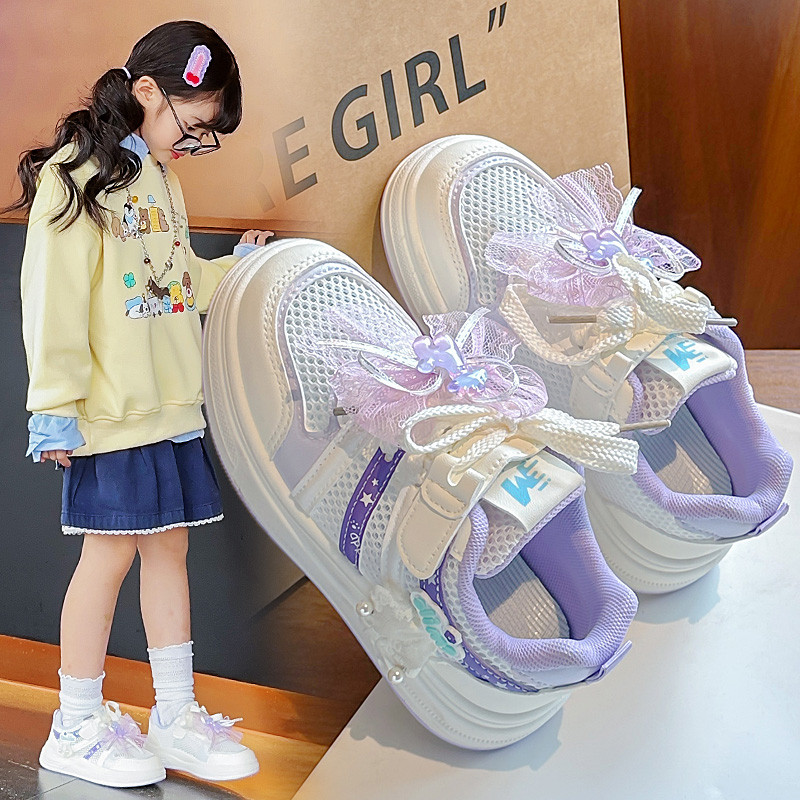 ABC Fans女童鞋子网面运动鞋春夏新款2026小女孩板鞋时尚小白鞋网
