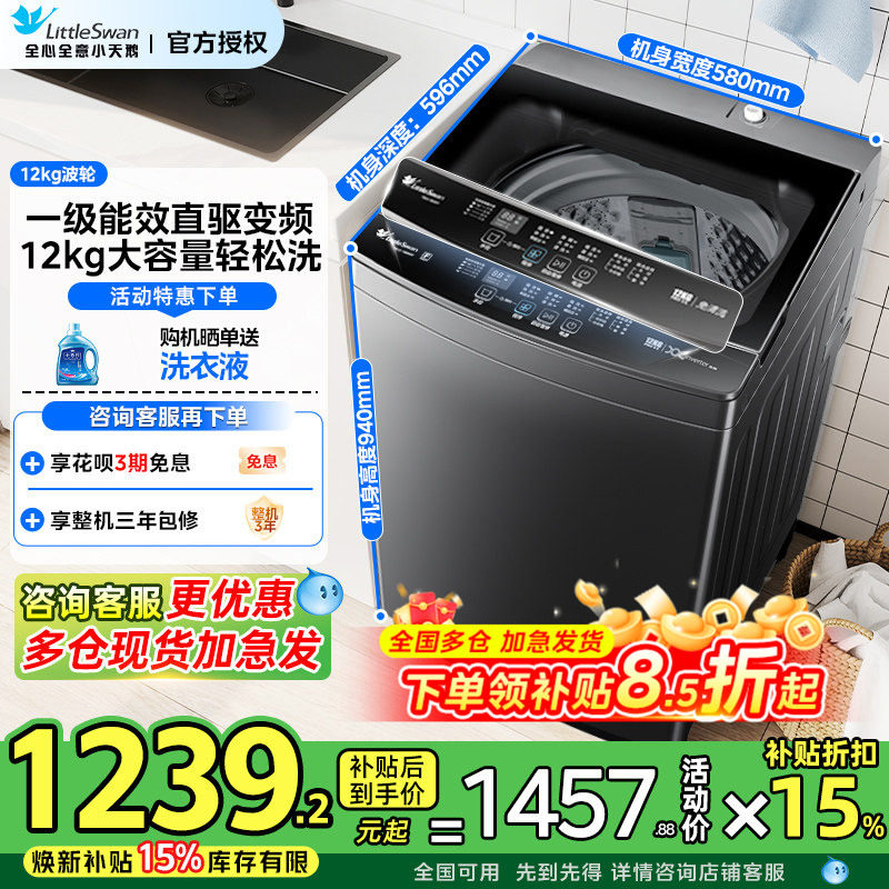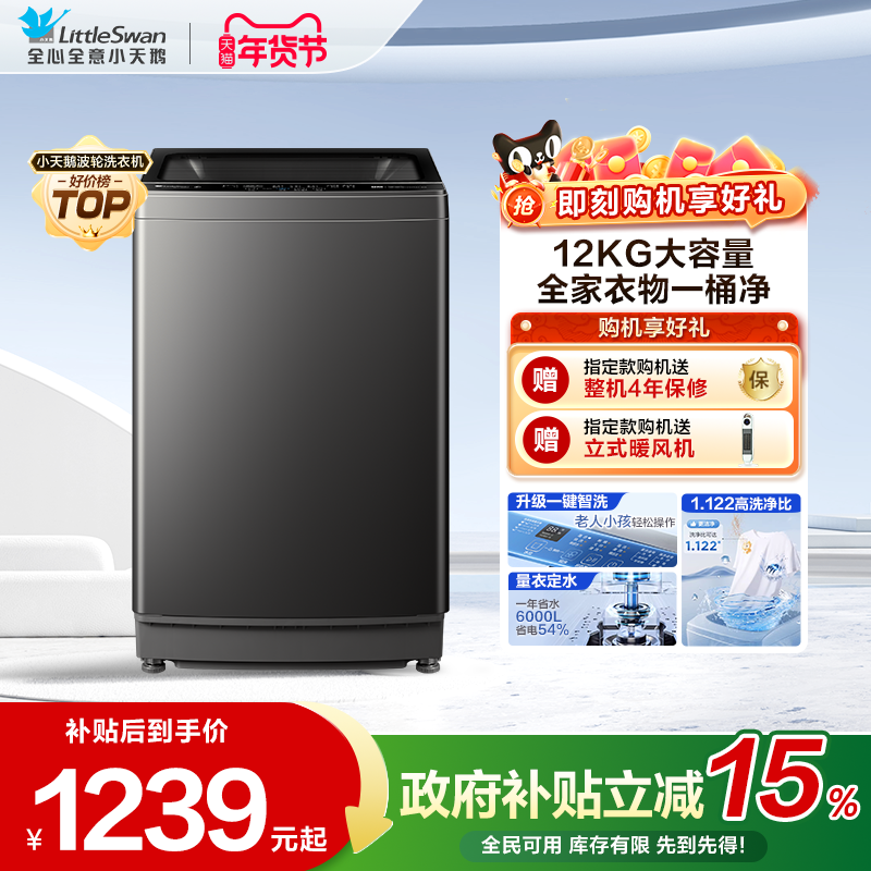 以旧换新补贴小天鹅波轮洗衣机10/12KG变频全自动家用大容量正品