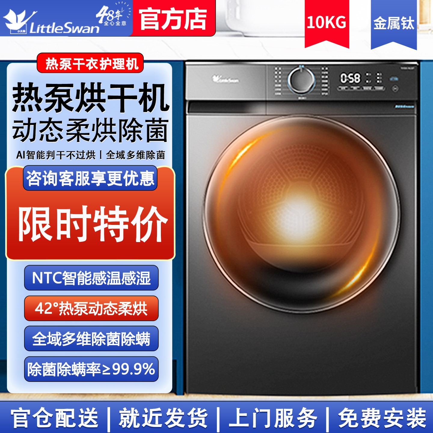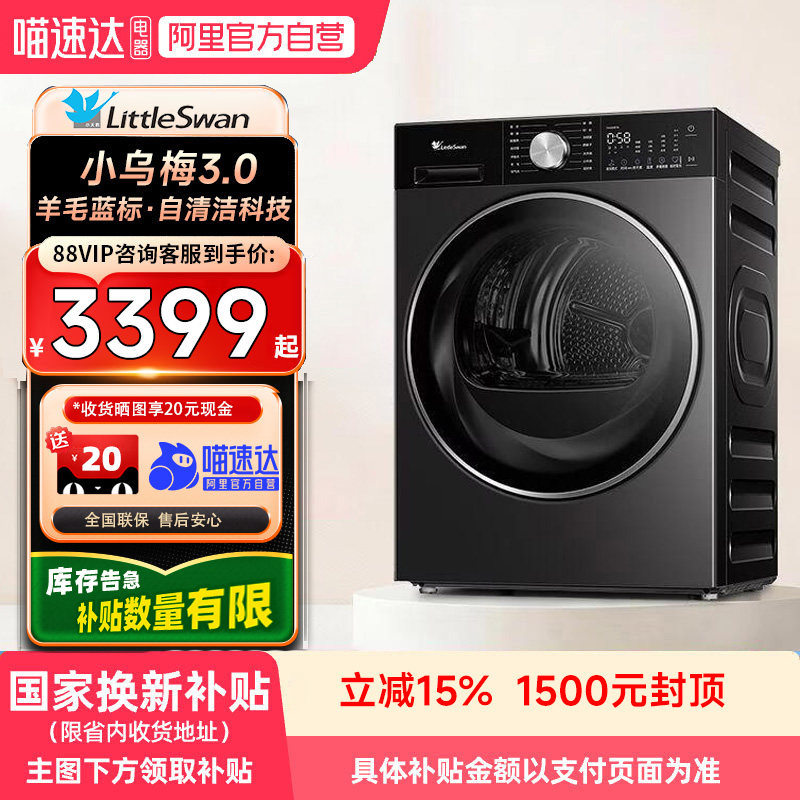 [超薄热泵]小天鹅10kg烘干机家用全自动滚筒式除螨猫毛旗舰店02T