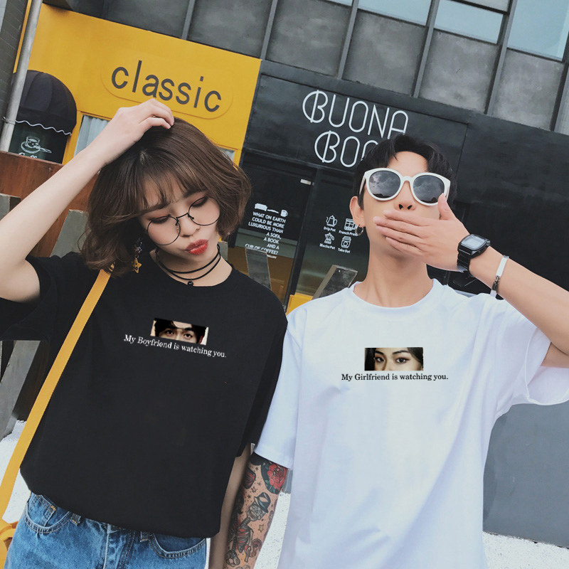 DIY私人照片眼睛定制T恤男女朋友礼物短袖不一样的情侣装体恤衫潮
