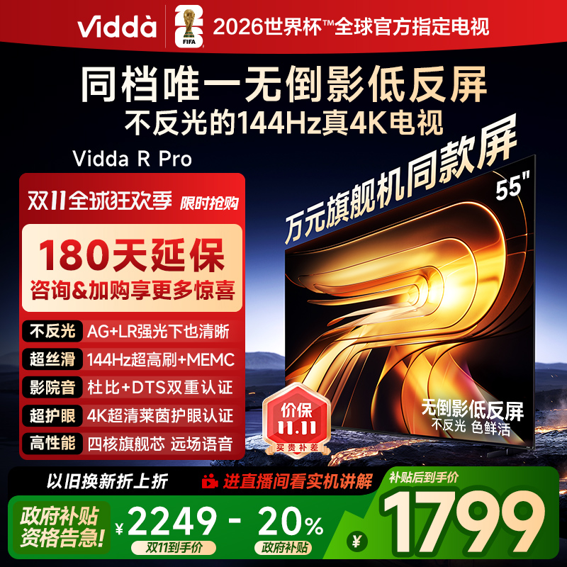 Vidda R Pro 55英寸 海信电视 不反光真4K 电视机以旧换新补贴65