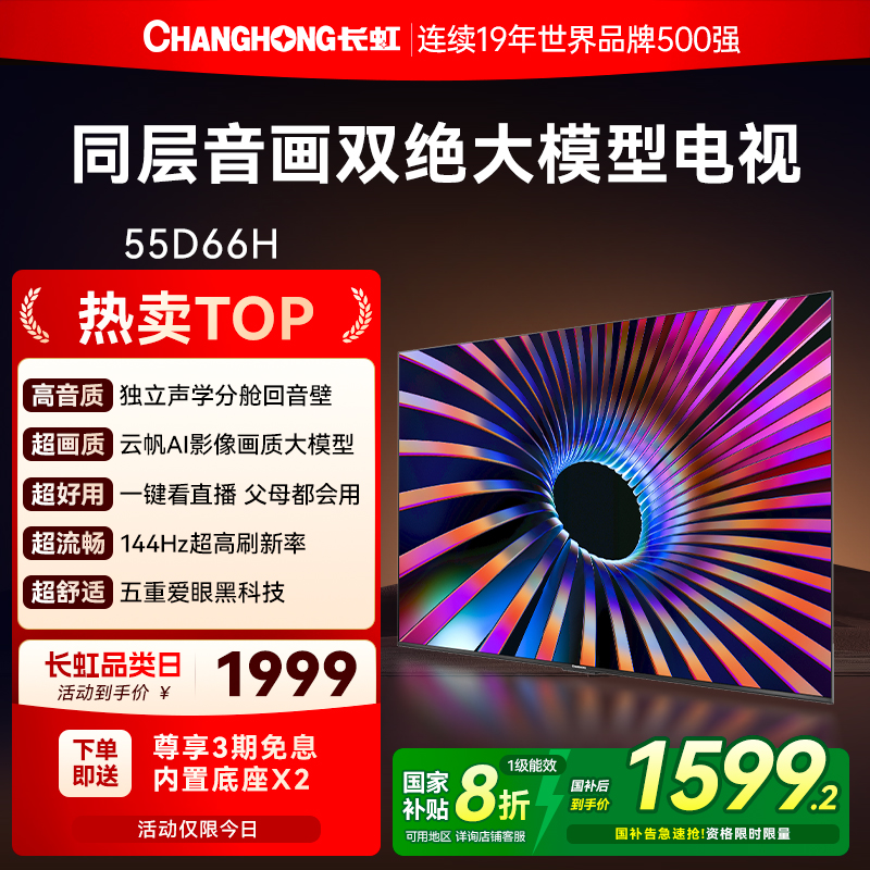 长虹55D66H 55英寸全面屏4K家用144Hz智能高清网络电视机政府补贴