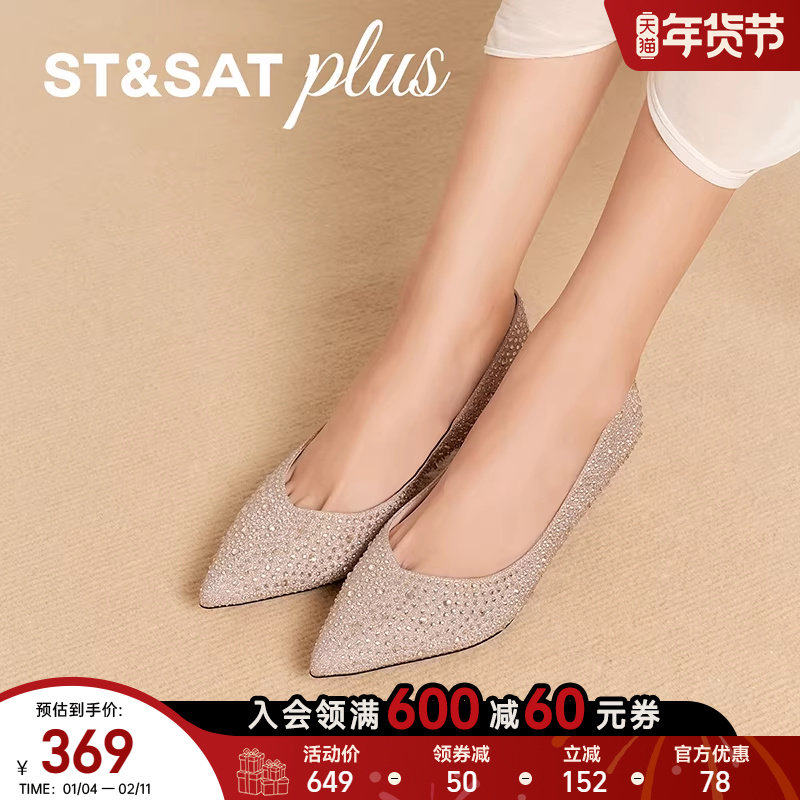 星期六性感高跟鞋2025夏季新款尖头水钻正装浅口一脚蹬SSD3111145