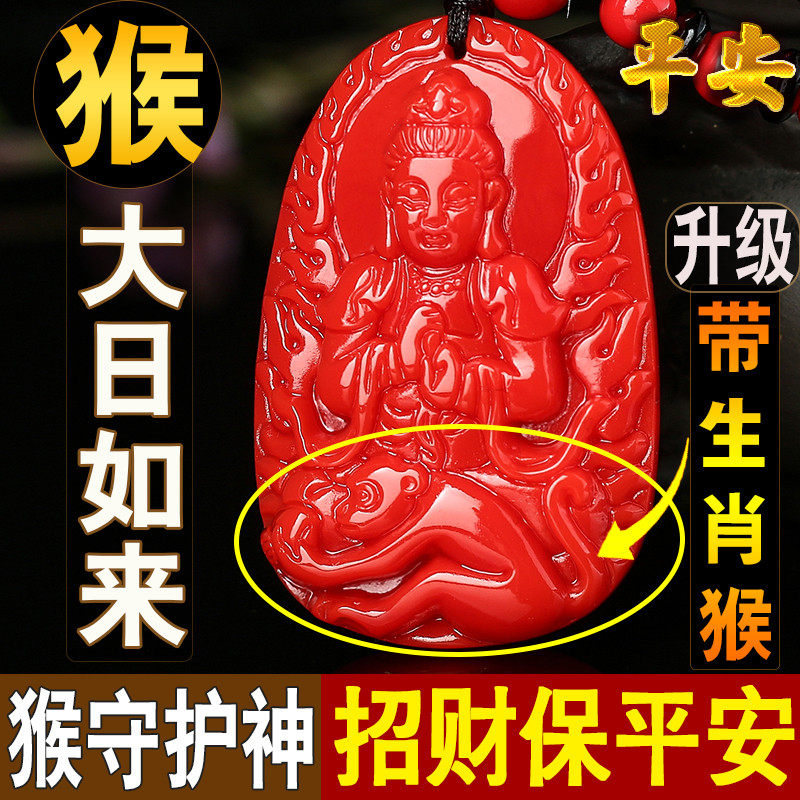 属羊猴2025蛇年吉祥佩戴物红朱砂大日如来佛像吊坠属羊本命佛转运