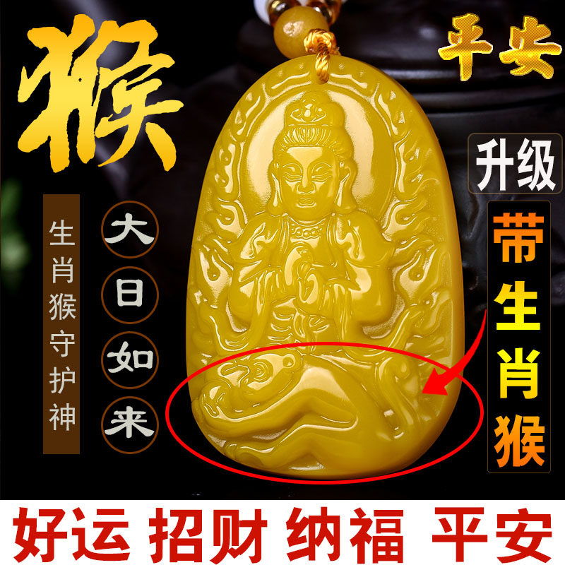 钛岁2025属猴吉祥佩戴物招财转运黄龙玉本命佛大日如来佛吊坠男女