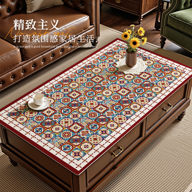 美式复古茶几垫餐桌布高级感轻奢桌面保护垫免洗防水桌垫防烫台布
