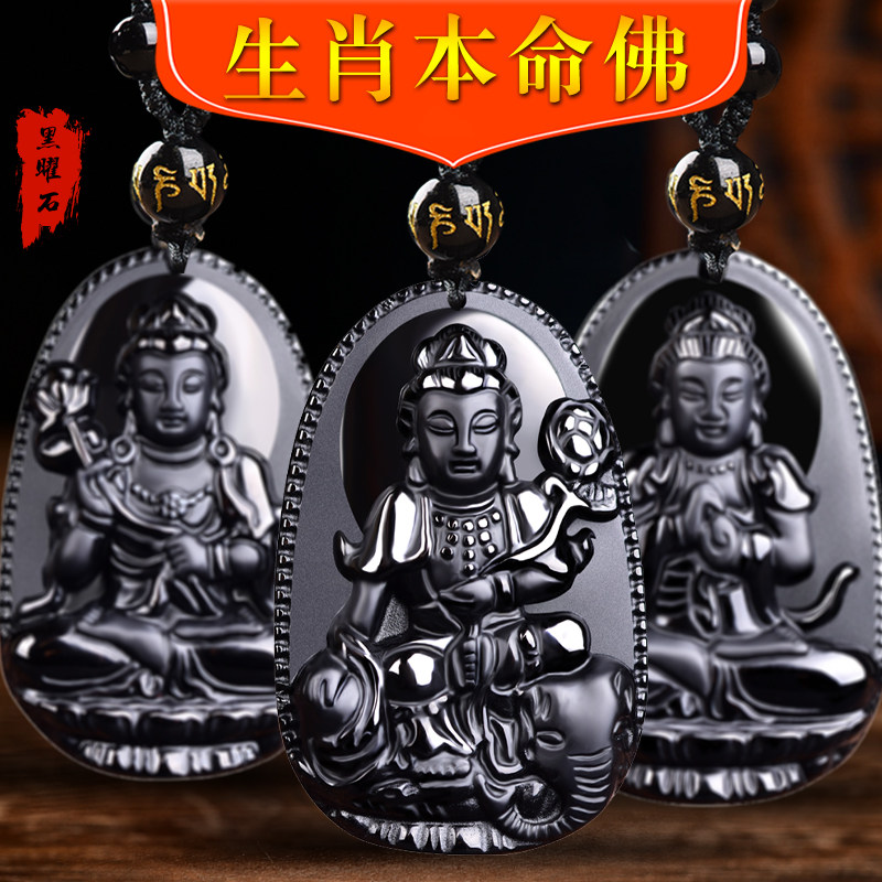 天然黑曜石本命佛吊坠生肖兔牛虚空藏大势至文殊马本命年礼物男女