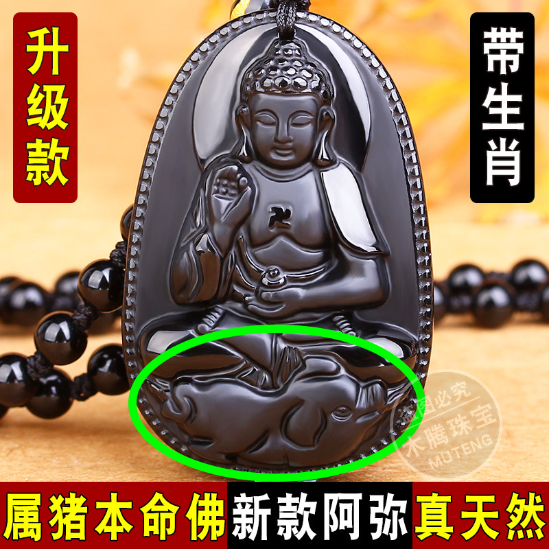 阿弥吊坠猪年属猪天然黑曜石十二生肖男女本命佛本命年项链男佛牌