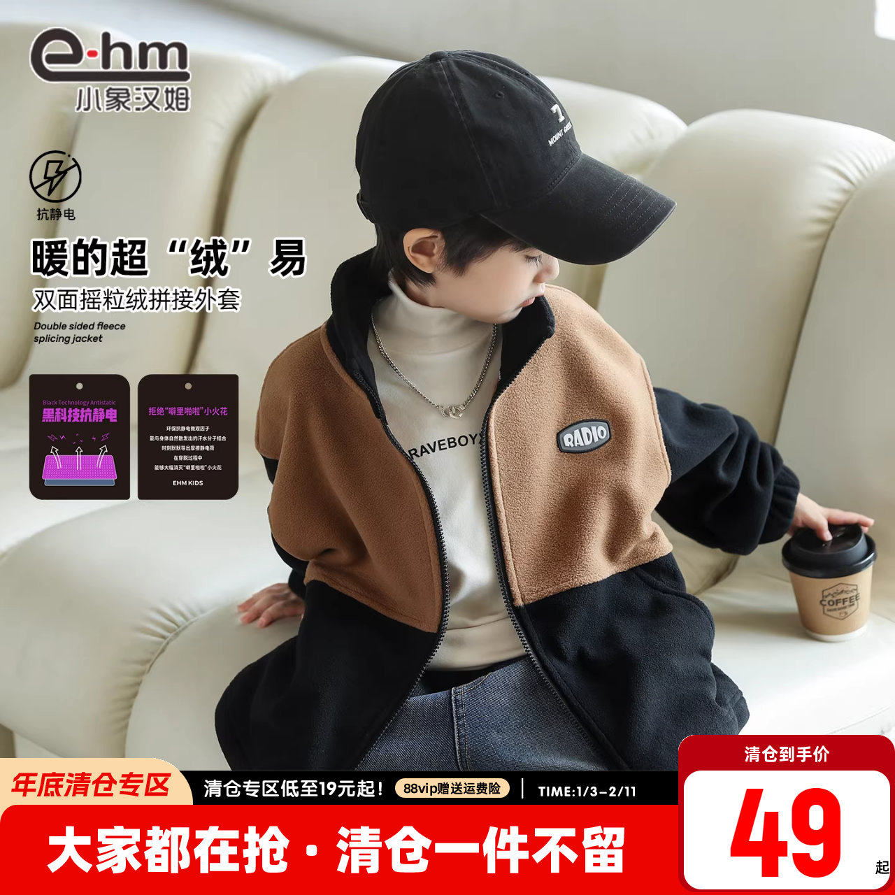 - 短款加绒男外套