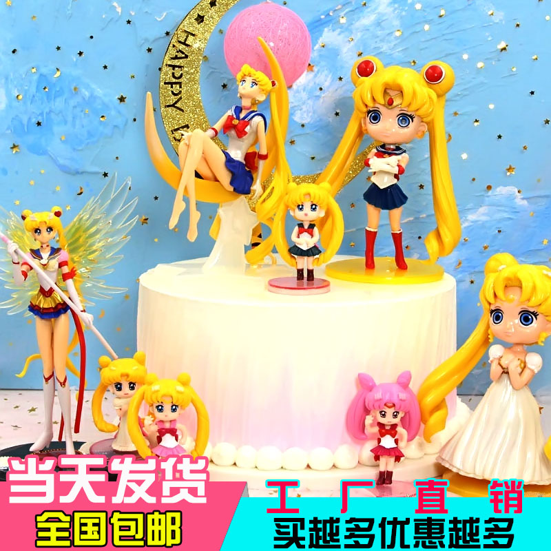 清仓蛋糕装饰美少女翅膀战士月亮水冰月摆件卡通公仔烘培摆件手办