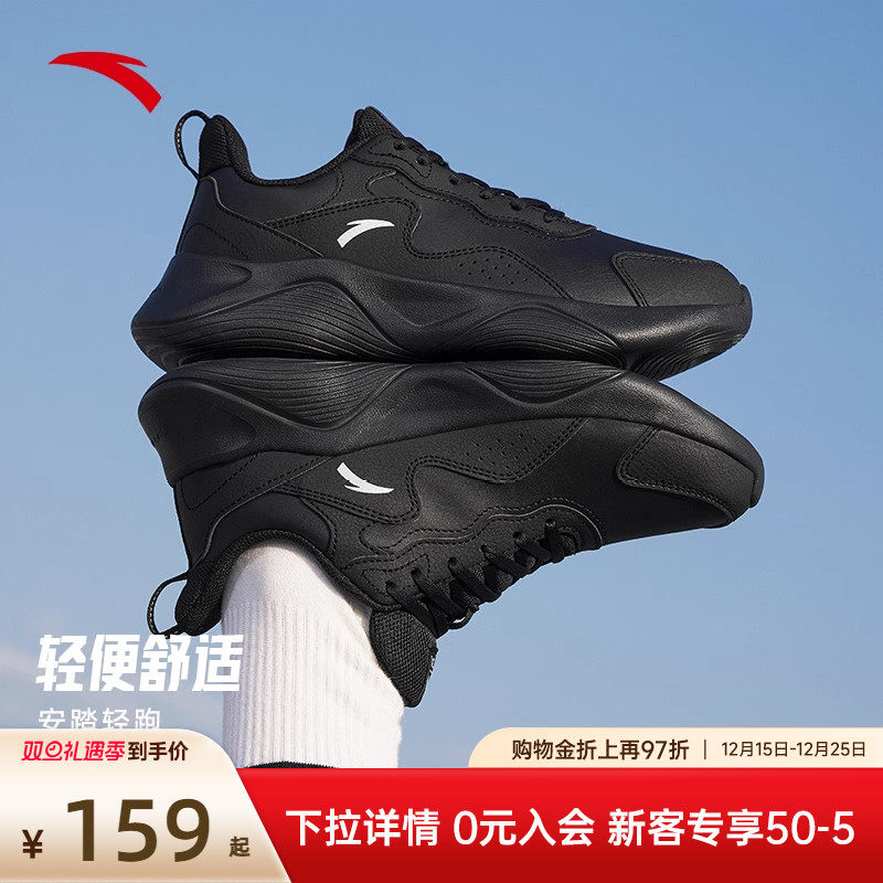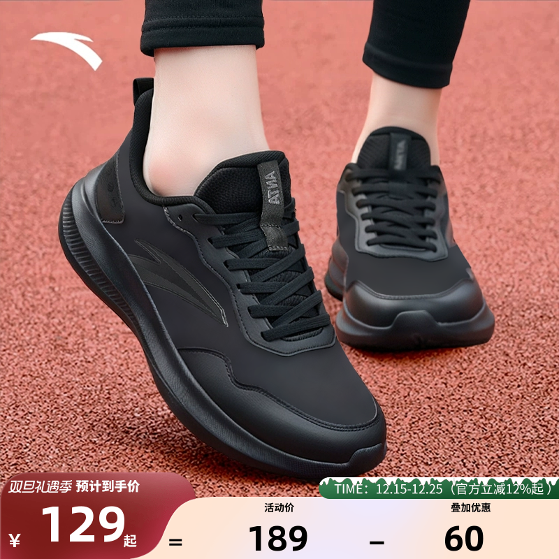 安踏女鞋运动鞋旗舰正品冬季新款女士轻质休闲鞋子皮面黑色跑步鞋