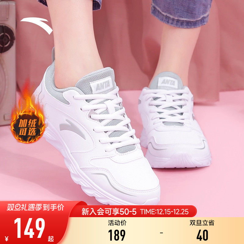 安踏运动鞋女鞋新款加绒防水休闲鞋正品女士软底小白鞋皮面跑步鞋
