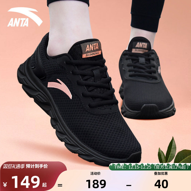 安踏女鞋跑步鞋冬季新款轻便减震黑色运动鞋女款旗舰正品女士鞋子