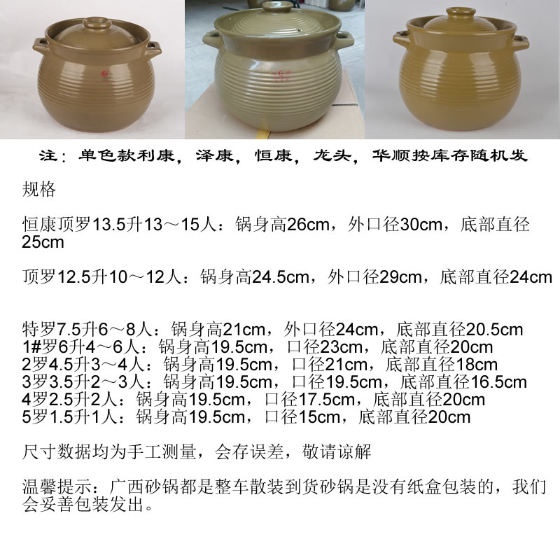 康舒砂锅炖锅陶瓷商用米线煲 明火耐高温燃气家用汤锅粥煲沙锅饭