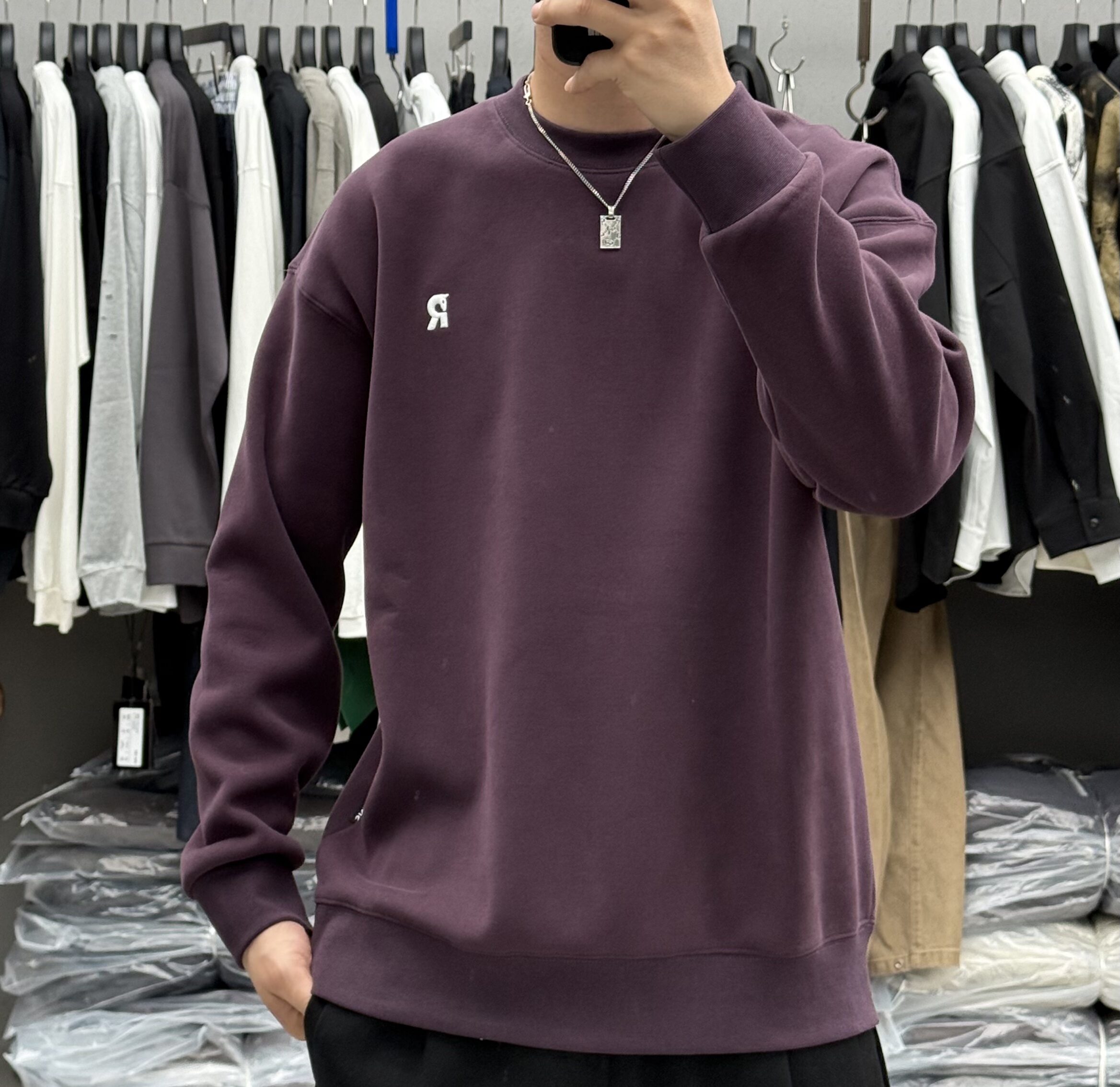 - 圆领薄卫衣男