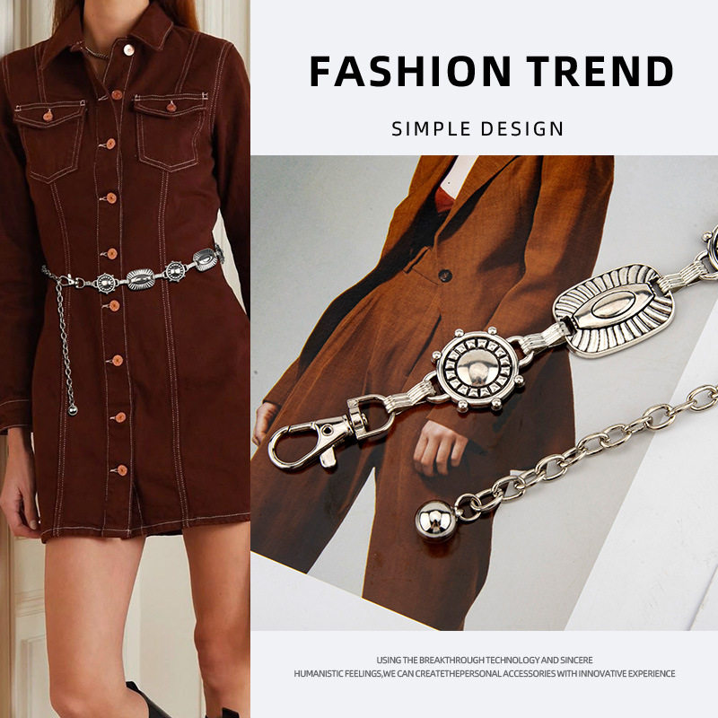 民族风金属腰链女士时尚装饰配裙子西装腰带百搭毛衣身体链条女款