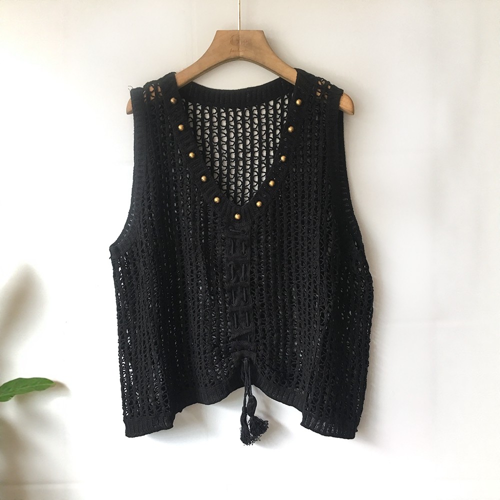 民族风针织镂空毛衣背心女士2025春秋无袖纯色马甲宽松显瘦百搭潮