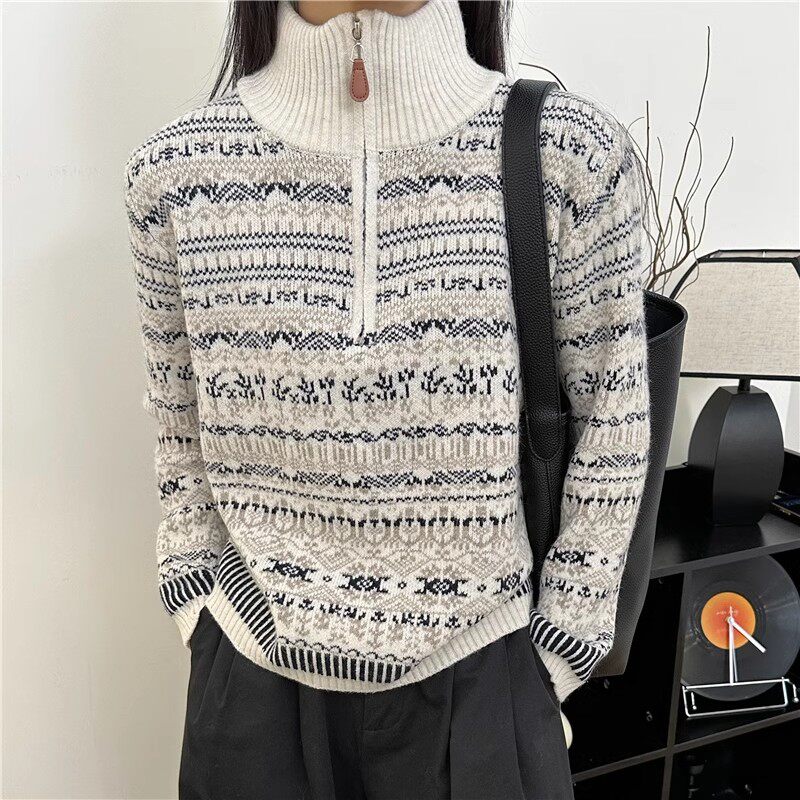 秋冬加厚半拉链女士民族风毛衣女款新款春季爆款针织打底衫女上衣