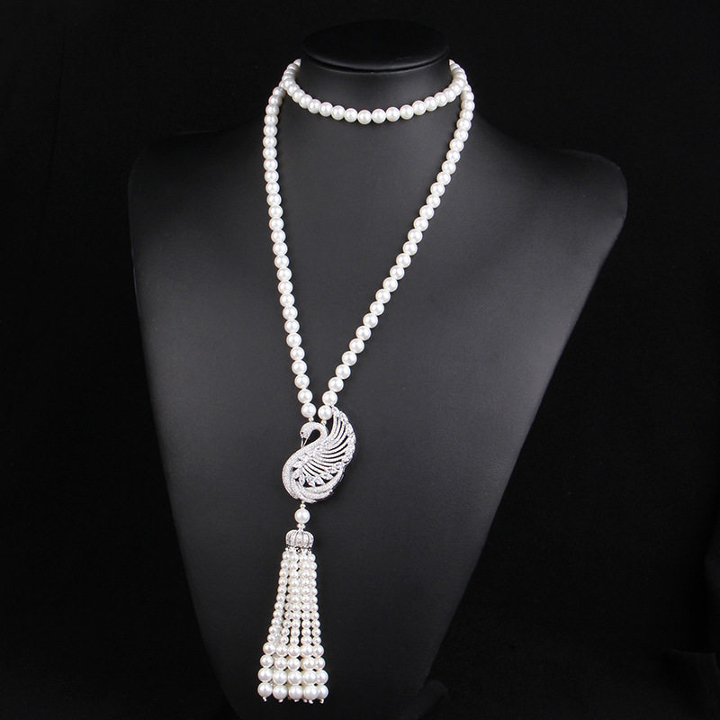春夏时尚项链女士锆石天鹅吊坠气质款珍珠毛衣链项饰服装百搭配饰