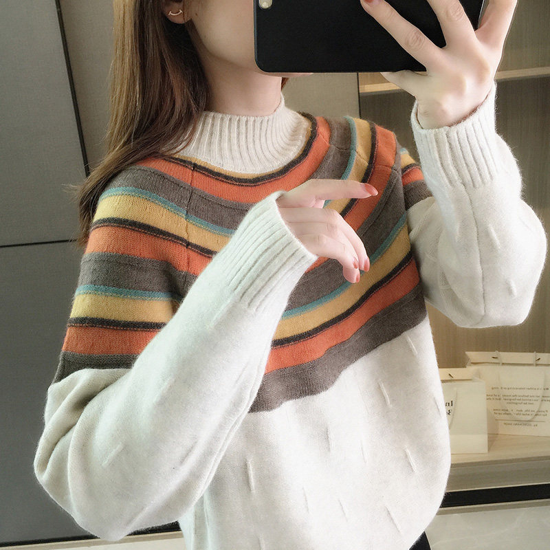 秋冬季女士毛衣新款半高领套头打底衫民族风针织衫女装慵懒风外穿