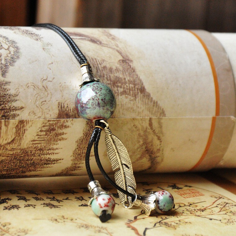 毛线衣项链民族风女士长款毛衣链项链吊坠秋季果实红色珠叶子陶瓷