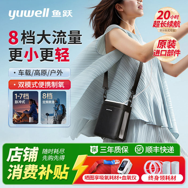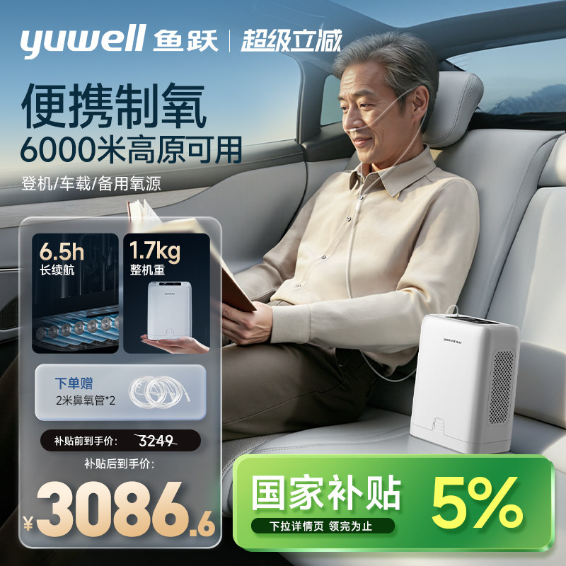 【国家补贴】鱼跃便携式制氧机8档大流量小型家用高原旅游长续航