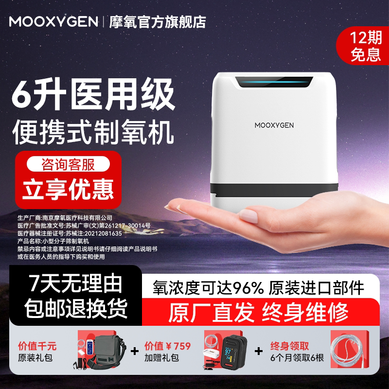 【厂家直销】摩氧6L升医用便携式制氧机随身小型氧气机老人家用
