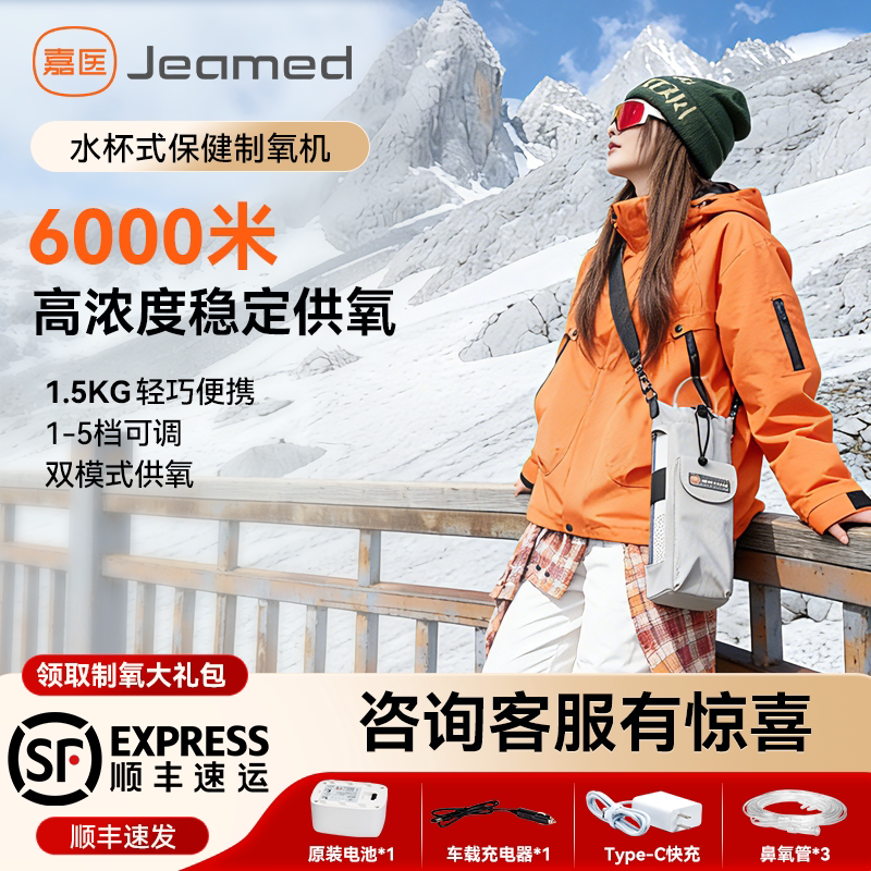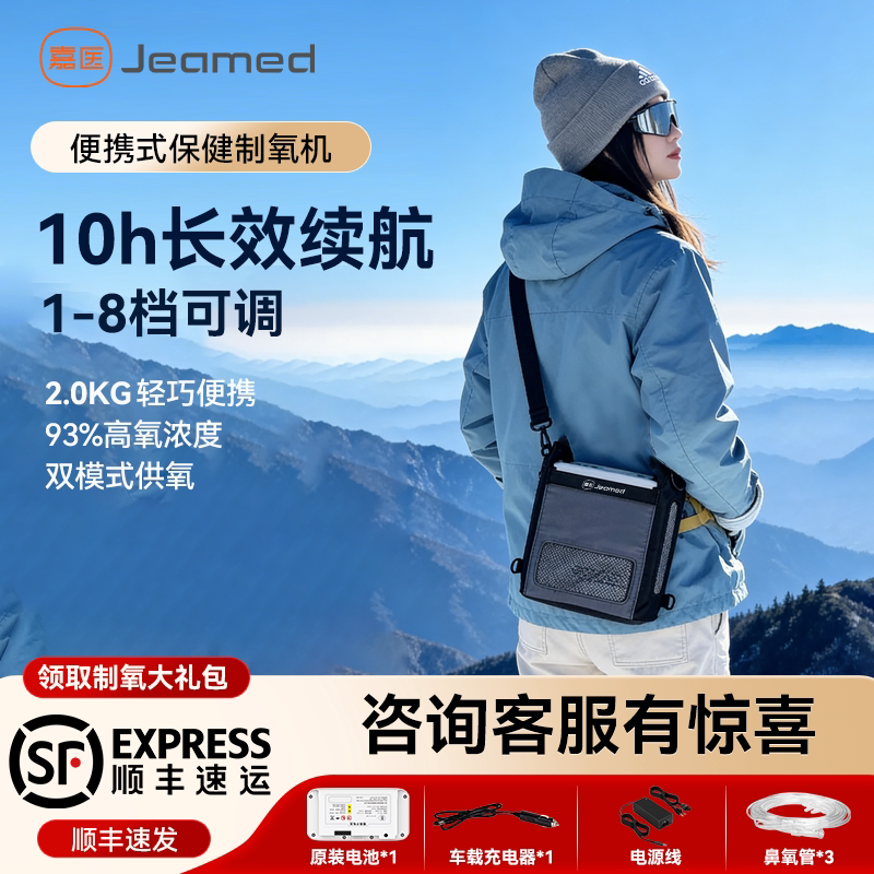 新品上架嘉医便携式制氧机8档可调随身户外车载高原吸氧机氧气机