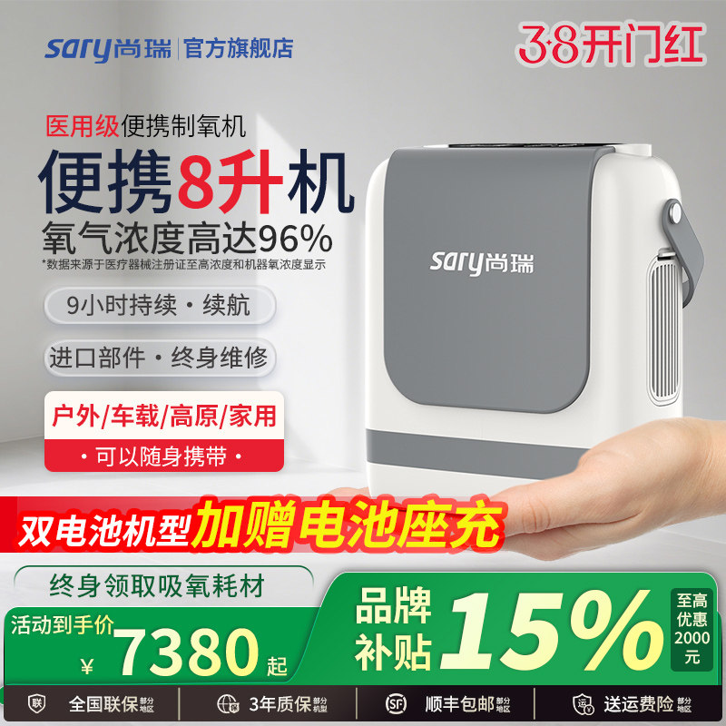 尚瑞便携式制氧机家用老人随身小型医用级吸氧机车载大流量吸氧机