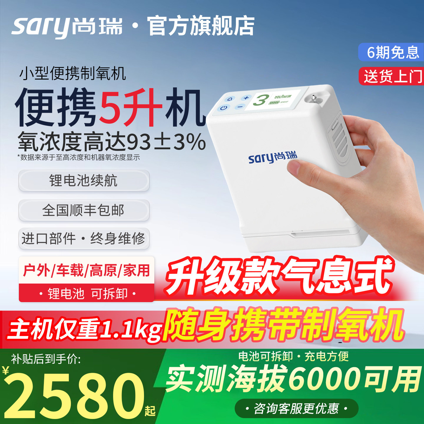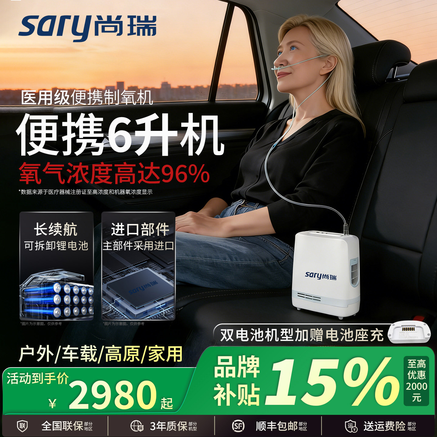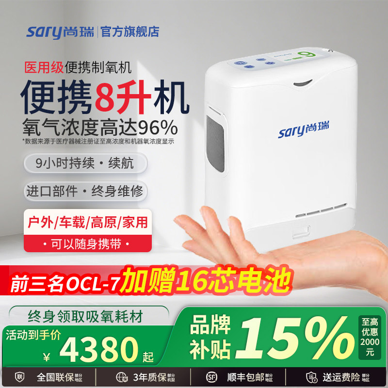 尚瑞医用级便携式制氧机家用老人随身小型5L升高原车载吸氧气机