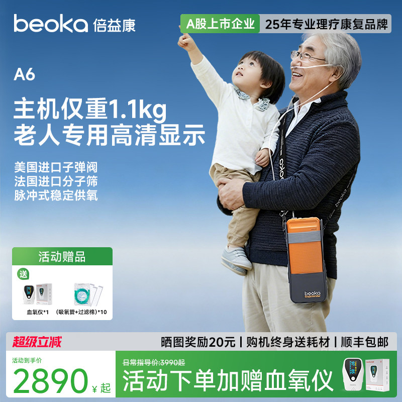 倍益康A6便携式制氧机小型家用随身吸氧机老人户外高原呼吸一体机