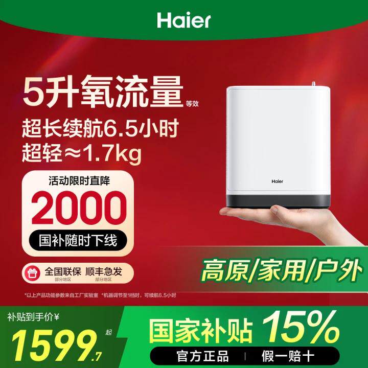 【国家补贴】海尔医用级便携式制氧机随身小型吸氧机老人家用车载