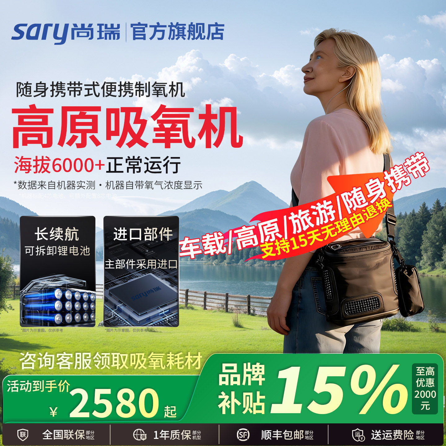 尚瑞便携式制氧机家用随身小型高原旅游车载吸持续出氧气双人使用