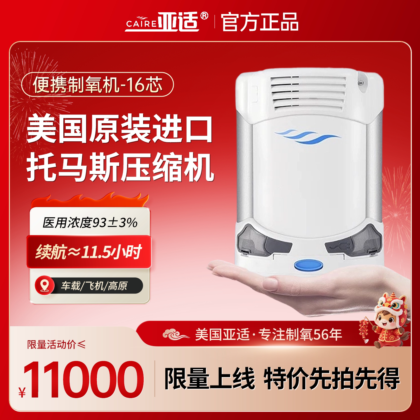 美国亚适便携式制氧机小型老人家用进口氧气机5档随身户外吸氧机