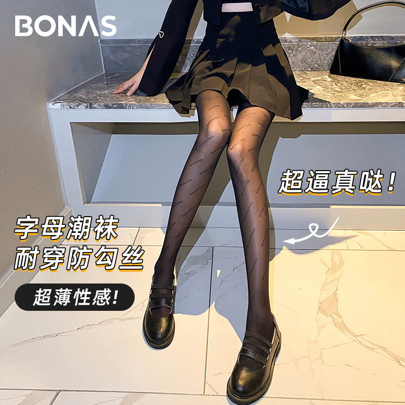 宝娜斯黑丝袜女性感防勾丝连裤袜黑色丝袜批发ins潮网红字母丝袜