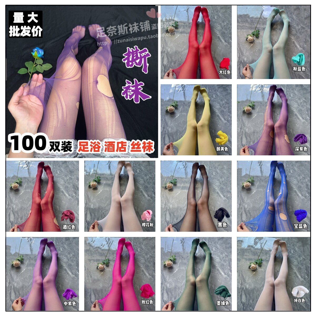 100双批发 会所足浴手撕性感一次性超薄丝袜易撕手撕袜美腿连裤袜