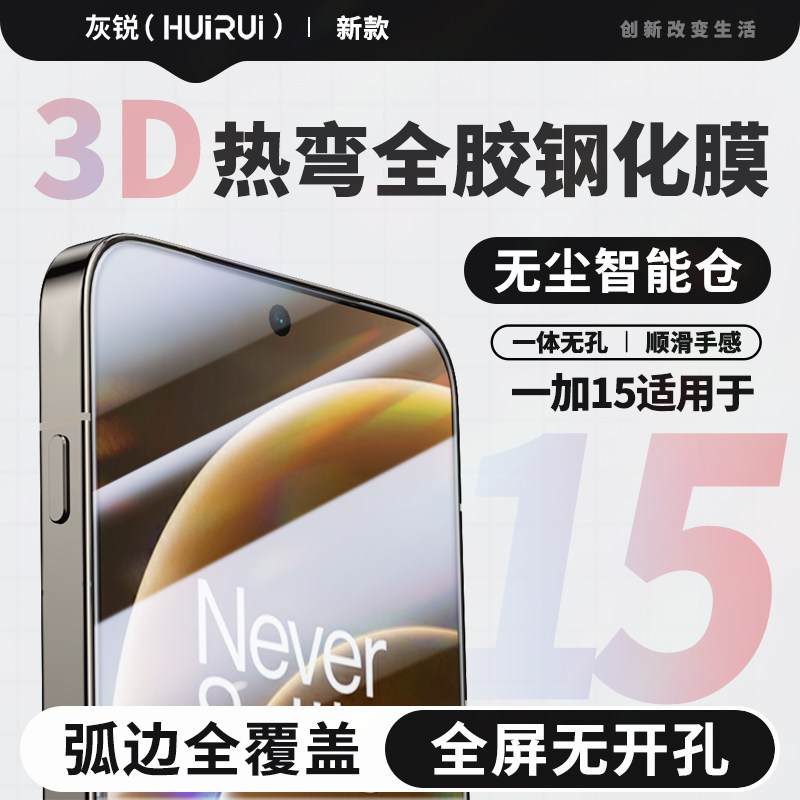 灰锐 适用一加15钢化膜3D全屏覆盖OnePlus 15无白边高清手机电镀超声波指纹解锁电竞无尘仓一体无孔玻璃贴膜